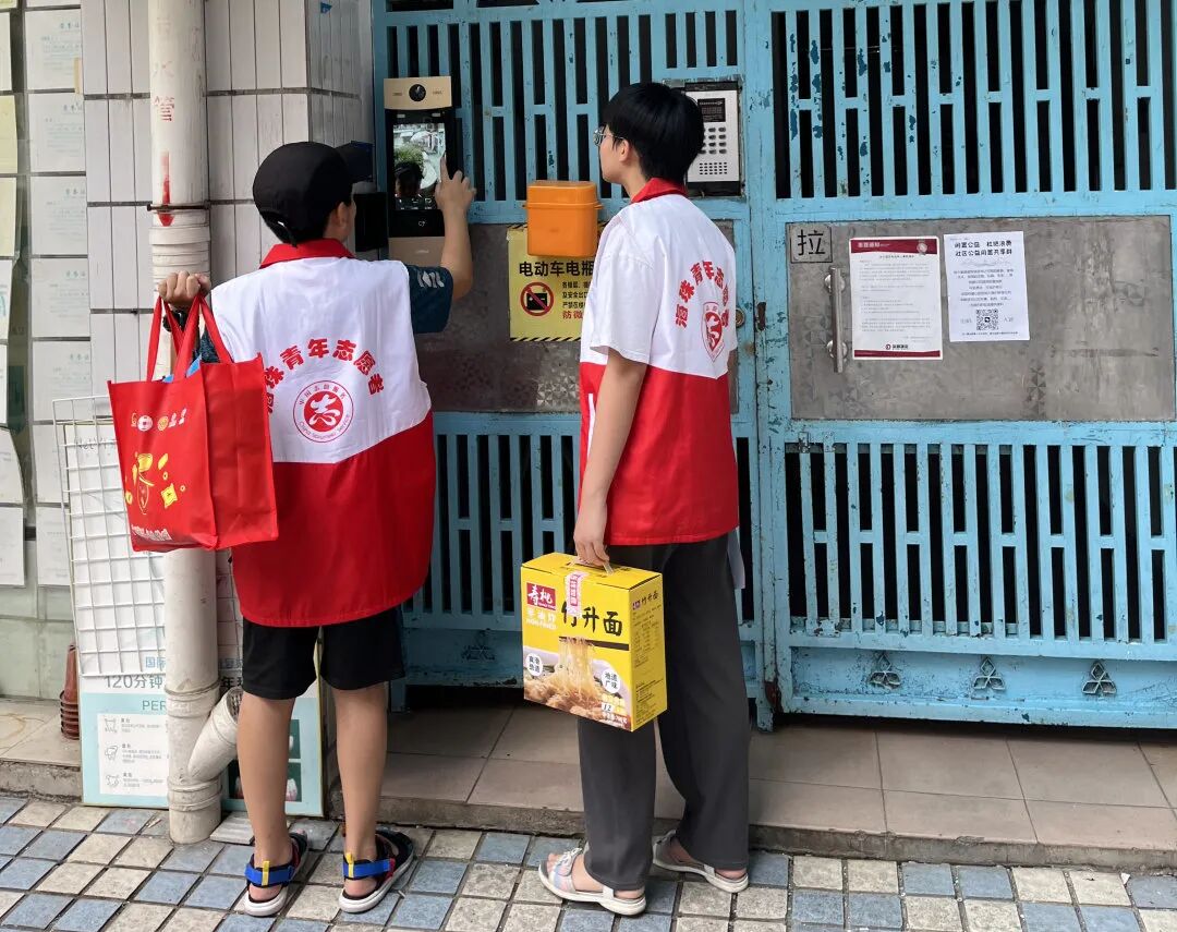 培训结束后,各组志愿者分别领取并请点好上门赠送的物资,并在出发前先通过电话与探访的长者沟通,表明自己的来意,礼貌询问长者是否有空可以接受上门探访。在征得长者同意后,志愿者整装出发前往长者家中。活动当天虽然温度较高,阳光猛烈,但是志愿者们的服务热情丝毫未减,拎着物资,穿梭在社区的每条道路,寻找对应的门牌号,兴致勃勃地上门拜访长者。