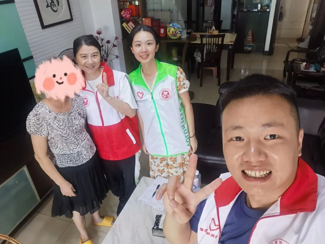 长者们对于志愿者的到来表示很高兴,愉快地与志愿者唠家常、谈近况,今年76岁的何爷爷亦是如此。何爷爷是一位退伍军人,志愿者们在何爷爷家现场为他测量血压时,发现何爷爷的血压和心率都有些有点偏高,正要感到担心的时候,一问何爷爷才知道,原来是看到我们过来太兴奋了。在聊天的过程中,何爷爷回忆起少儿上学时代,向志愿者讲述着一直记到现在的趣事,不大的房子里充满了长者和志愿者们的欢声笑语。