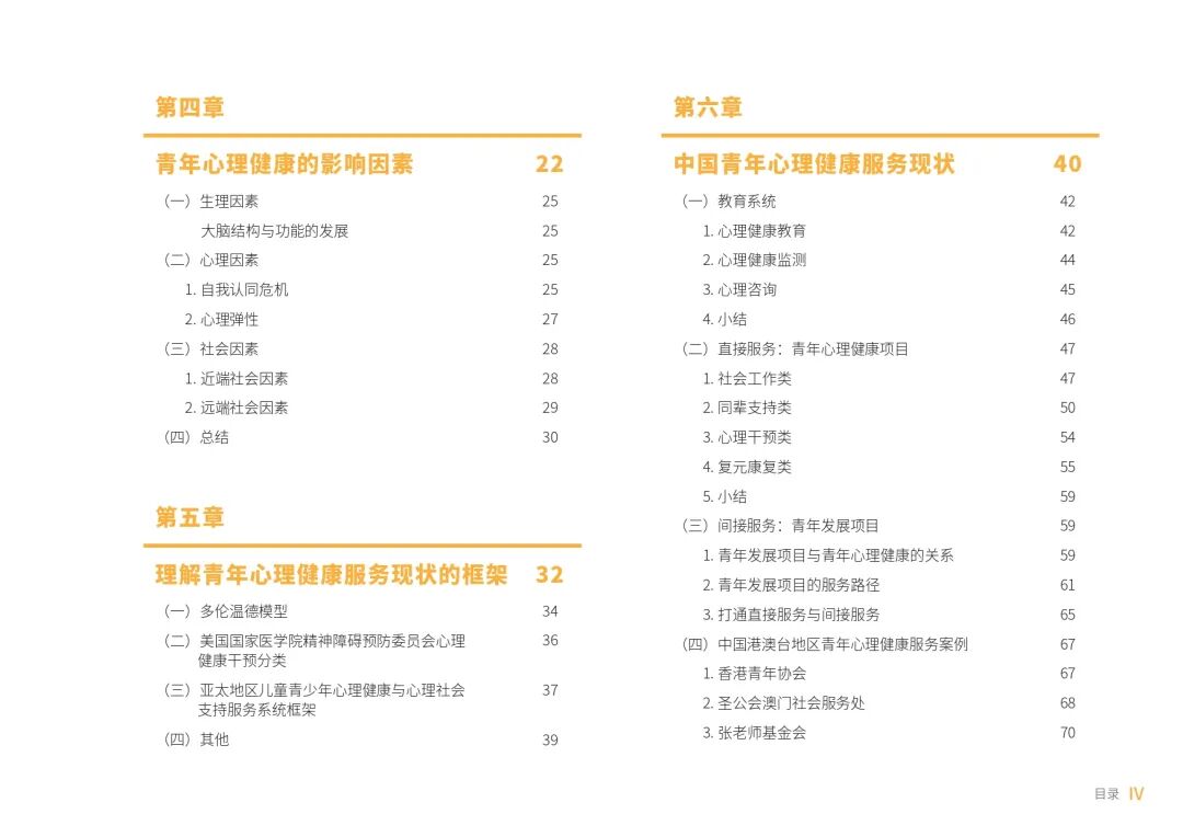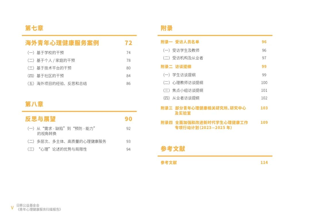 海外青年心理健康服务经过了多年的探索与发展,在服务的聚焦性、服务的迭代性、人群的普及性方面都有不少的成熟经验和模式。在报告的第七章,我们选取了若干个具有代表性的海外项目供大家参考。